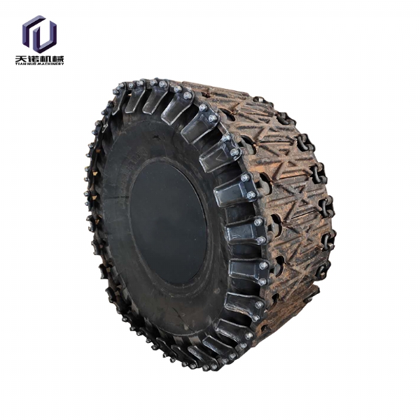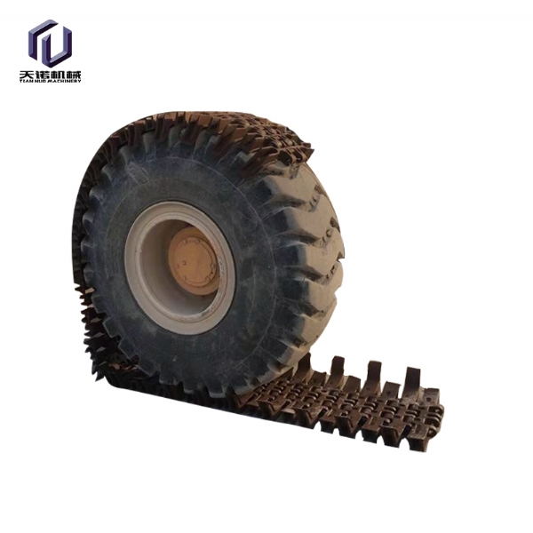 輪胎保護履帶是采用國內(nèi)外先進生產(chǎn)工藝,利用優(yōu) 質(zhì) 合金鋼材料,經(jīng)精 密鑄造,高強度全自動閃光對焊,編結(jié)構(gòu)合理,利用特殊焊接工藝焊接而成的一種輪胎設(shè)備。保護履帶耐磨性好,抗疲勞性強,根據(jù)使用條件壽命達3000-8000小時。拆裝方便,省時省力,產(chǎn)品規(guī)格齊全,可與進口裝載機所匹配,輪胎保護履帶,采用高科技耐磨材料制成其結(jié)構(gòu)新穎緊湊,性能穩(wěn)定,主要適用于礦山作業(yè)的裝載機、鏟車;其輪胎磨損快,使用壽命短,輪胎價格昂貴,使用成本高,將本產(chǎn)品嚴密的包裹在裝載機的輪胎上,可以有效的保護裝載機的輪胎,不被尖銳的石塊劃傷刺破,延長了輪胎的使用壽命,使用一條輪胎保護履帶,能節(jié)省十條輪胎以上的費用還能提高裝載機的工作效率和安全是礦山作業(yè)的具備品。